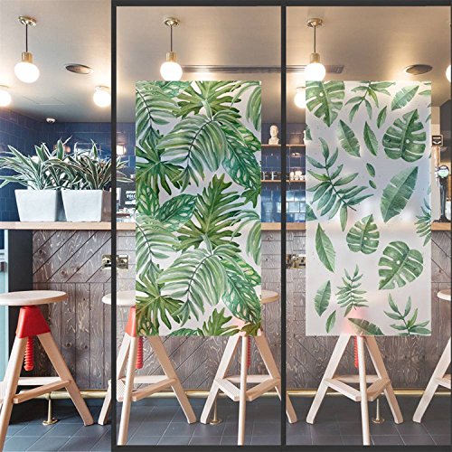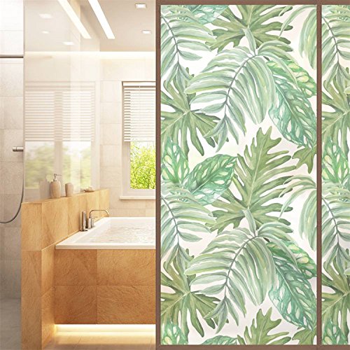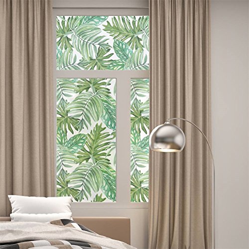 AmazingWall Palm Leaves Privacy Window Film Bathroom Glass Door Decor Heat Control Home Kitchen Dormitory 22.8x70.9"