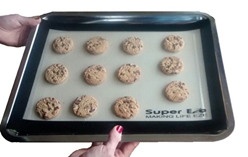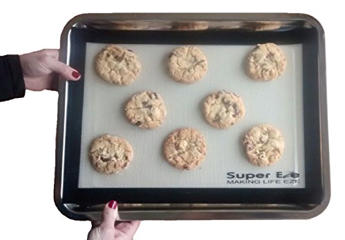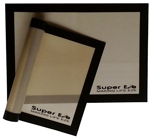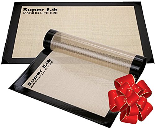 JUST LAUNCHED Silicone Baking Mat Set of 2 by SuperEze. Best for Half Size Cookie Sheets 16.5" x 11 5/8" - Heavy Duty FDA Approved Non Stick Professional Grade Silicon Liner Mats (Free Ebook Included)