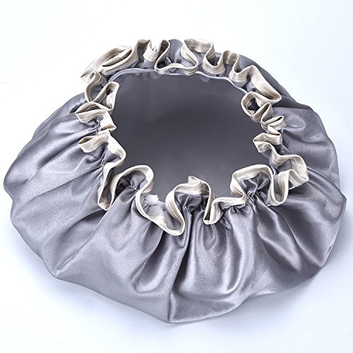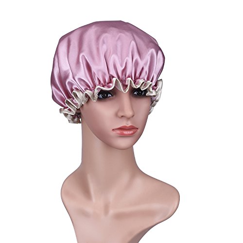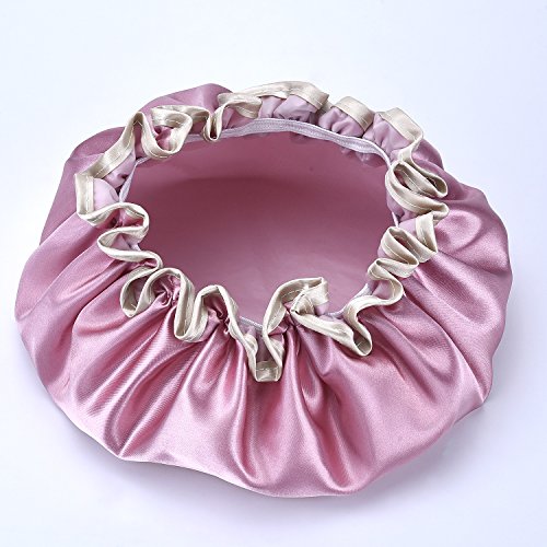 - Suitable showing supplies: 2 x shower cap respectively in pink and gray color, good choice for showering, cooking, hair mask treatments and SPA