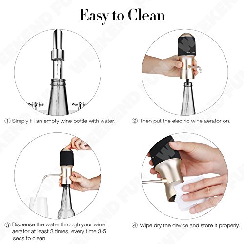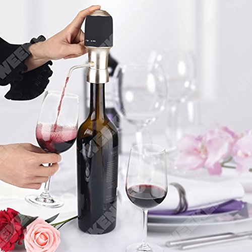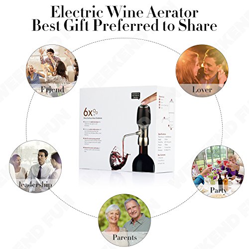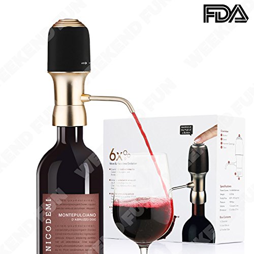 Let Your Alcohol Breath Unlock the perfected taste of wine, scotch, and whiskey with the Decanter. It's the most comprehensive, all-in-one aeration solution that instantaneously transforms traditional classics into show-stopping drinks loaded with flavor subtleties.With its dual infusion and suction system, it is able to fully oxidize and aerate your alcoholic beverage all at once.The decanter provides 6 times more surface area oxidation than your average gravity-injected funnel, thus creating alcoholic drinks that are much smoother full-bodied, and flavorful. 6x More Surface Area Oxidation Essential for bold red wines like Cabernet, Sauvignon,and Bordeaux.Enhances select white wines with dry. Full-bodied qualities like Chardonnay, Bordeaux Blanc, and Riesling.Ideal for wines young and old. Taste the full flavor profiles of both fresh and aged wines with visible sediment?Boosts the aroma and taste of whiskey, scotch, darkand select IPAs. Instant AerationPerfect Pour Experience luscious full-bodied drinks by simply attaching the tap to the bottle and pressing the button for instant aeration.The decanter dispenses directly into your glass at a rate of 1.2 ounce every 2 seconds and immediately stops upon releasing the button for the perfect pour every time. Precise pour technology allows you to control the amount going into your glass, so you don't have to worry about spills anymore. Airtight Seal Keeps Wine Fresh The decanter's airtight rubber seal prevents air from seeping into the bottle and keeps your wine fresh for longer periods of time. Package Include: 1x Electric Wine Aerator 2x Flexible Tube 1x User Manual Note: Batteries are not included. 0