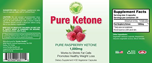 Pure Raspberry Ketone 1,000mg Dietary Supplement By Tender Health for Healthy Weight Loss Promotion. (60 Vegetarian Capsules)