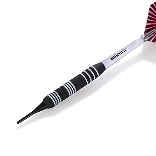 -. Feature : High-quality, recreational Dart set from Unicorn - the world-leading brand in darts / Tips: (3) soft tip darts designed for Use with electronic dartboards / Barrels: (3) 18gm rubberized steel barrels allow for enhanced grip / Shafts and flights: (3) XL shafts, (3) gripper shafts, and (6) polyester flights / Includes: Unicorn slimline hard darts case for convenient storage