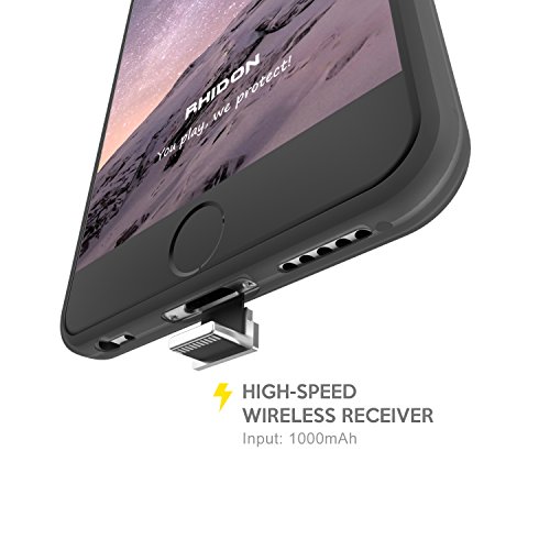 iPhone 6S Plus wireless receiver case ,Rhidon iPhone 6 Plus Qi Wireless Charging case Flexible Lightning Connector [1A Upgrade] (Black))