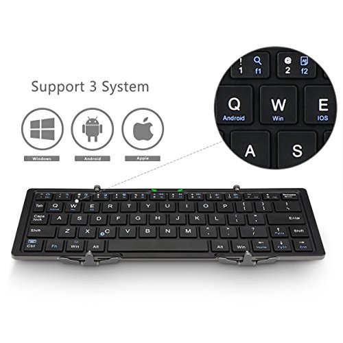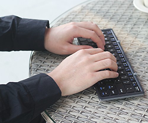 Foldable bluetooth keyboard: folding and ergonomic bluetooth keyboard, Pocket size, sleek and slim design.