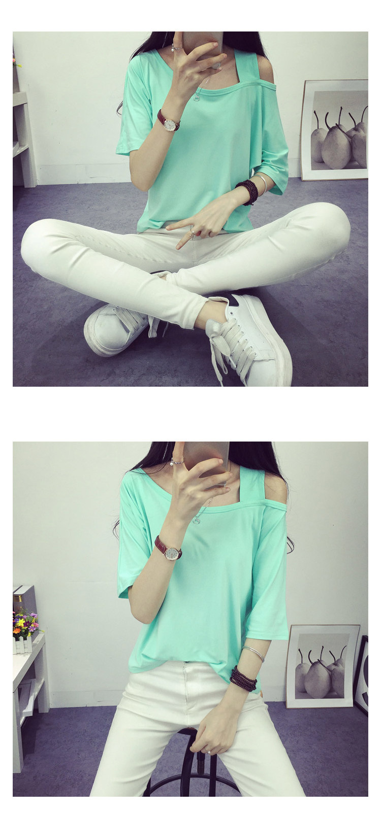 很特别的肩带设计,非常显瘦,没有其他多余的剪裁和配色,看似简单,其实恰到好处。