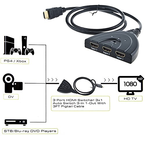 Flashmen® 3 Port HDMI Switcher 3x1 Auto Switch 3-In 1-Out With 50CM Pigtail Cable