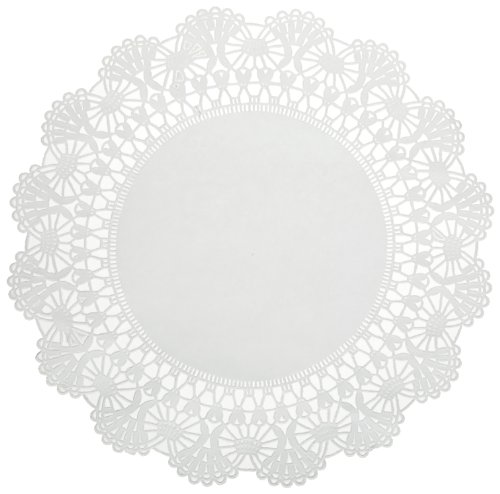 Hoffmaster 500239 12" white round Cambridge lace doily is a white, round, disposable, paper lace doily for table decoration and food presentation. It is 12 inches in diameter and Kosher certified. Each package contains 1,000 doilies.