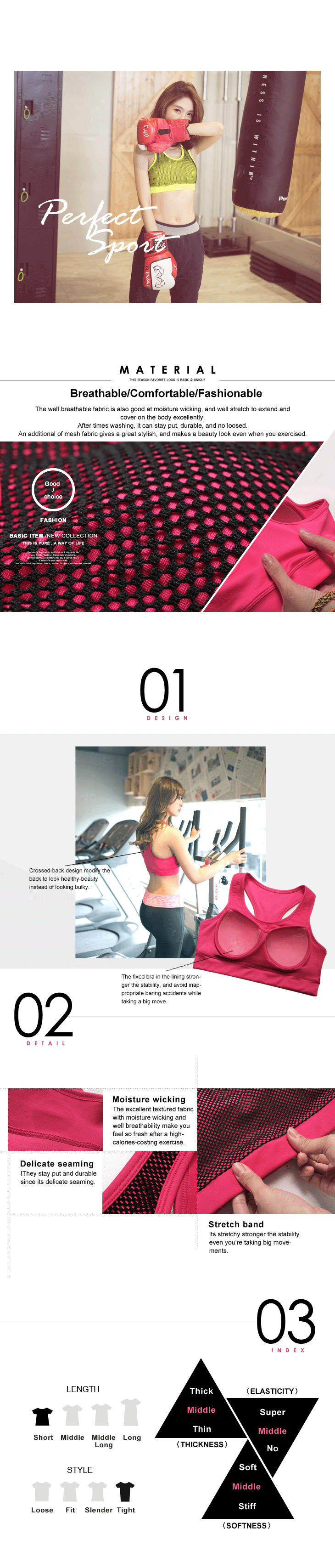 The top is made with our unique ultra-breathable fabric which is great for absorbing moisture and sweat. The stretchy and body fabric is also perfect for stretching exercises such as yoga and aerobics.