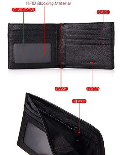 -. Feature : ★★★★★ITALIAN GENUINE COWHIDE LEATHER WALLETS PURSES: Leather wallet gifts for men: gift packaging, the top gifts for men. Design is USA,Tough stitching and soft feeling.Hand Made by professional artisans.a beautifully crafted wallet that will only get better with age. / ★★★★★RFID BLOCKING TESTED & APPROVED BY INDEPENDENT LAB TESTS. Mens rfid wallets with 13.56 MHZ. Our wallets have been tested for 13.56 MHz Frequency in which our credit cards, debit cards, driver license and ID cards operate. PLEASE BE NOTED THAT the signal of some ID badge, access cards and hotel room cards which operates in 80 KHz, can not be blocked by this wallet. / ★★★★★ENHANCES PERSONAL SECURITY: Men's protcted rfid secure wallets - we leverage top RFID technology to block RFID signals used to electronically scan your wallet as someone passes by unnoticed. This keeps your vital information in driver license, debit cards and credit cards from being stolen. / ★★★★★PREMIUM FUNCTIONALITY: Mens classic wallet with 9 card slots, 1 leather framed ID window 1 bill compartment and 1 compartment with zipper. Extra capacity leather slimfold wallets and perfect front pocket wallets.Top quality and luxury slim wallets!Dimensions = 4.13" 3.54" 0.39". / ★★★★★SATISFACTION GUARANTEE: As a professional leather store, we know you'll love our wallet, that's why if you aren't 100% satisfied we will provide you with a refund or a free replacement - which ever you prefer. Buy more for your friends and family.