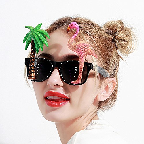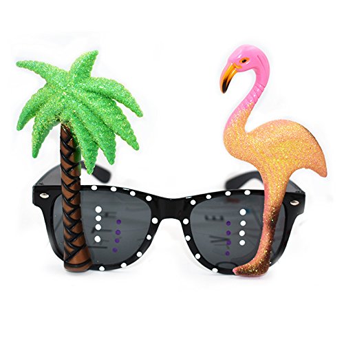 SANFENG Flamingos and Tree Party Glasses, Glittered Glass Frame