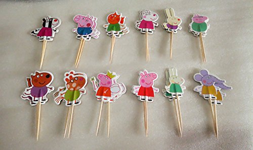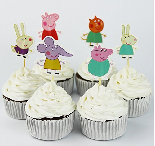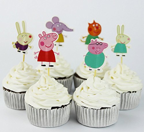 24 PCS Cute Peppa Pig Theme Party Decorative Cupcake Topper For Sweet Heart Birthday Party Decoration