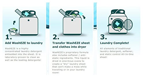 WashEZE 3-in-1 Laundry Detergent Sheets, Unscented, 20 Count Travel Friendly!