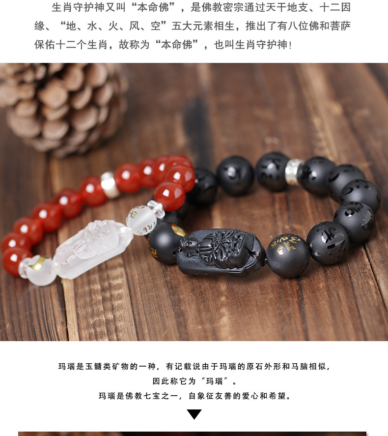 开光生肖狗三合太岁华盖金轮手链十二生肖开运吉祥物男女款手链