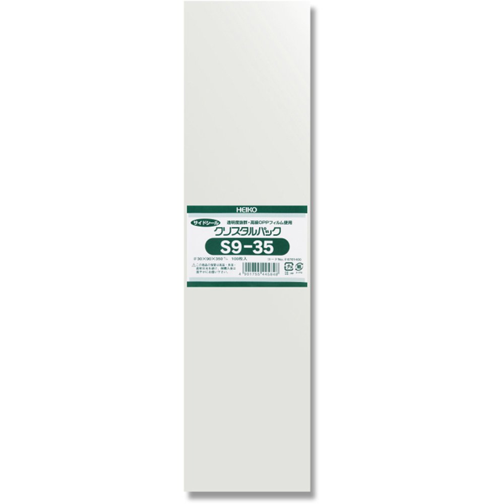 透明度と強度に優れたポリプロピレン製の「クリスタルパック」。 たっぷり使える大容量タイプ。 【サイズ】幅90×高さ350mm 【入数】100枚 【材質】OPP0.03mm厚 商品の保管は、高温・多湿・直射日光を避け、ご購入後は速やかにお使いください。