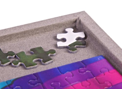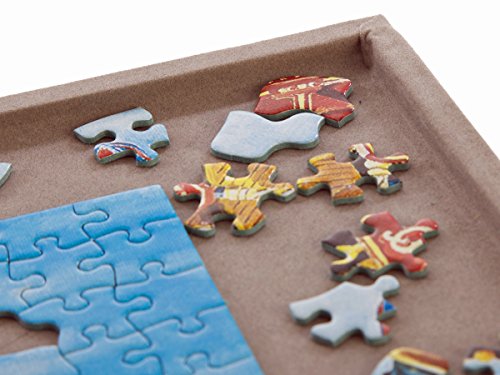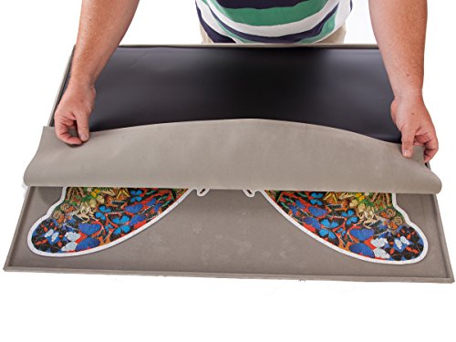 Studio : Jigthings Limited Publisher : Jigthings Limited Binding : Toy Product Description Using a Jigboard on which to make your jigsaw puzzles allows you to constantly keep your puzzles tidy and to easily move them from one place to another. There is a raised edge around the board so that pieces do not get knocked off and lost. This is the second largest Jigboard in the Jigthings range and the most popular size in the USA. The board will accommodate most puzzles up to 1,500 pieces (sizes up 36 inches x 26 inches) as well as all the prevalent makes of 1,000 piece puzzles. Soft fabric (much like the baize on a snooker table) covers all surfaces so that there is never any danger of the board scratching a table that it is rested upon. At the same time, the work surface is solid and a joy to work with. The fact that the board is solid means that it can be supported on the smallest of tables and this makes it possible to do a jigsaw much larger than the table itself. Each board comes complete with a Jigmat that combines together two different materials. One side is the same soft fabric material that covers the board whilst the other side is waterproof plastic. Ordinarily, the Jigmat (plastic side up) completely covers the jigsaw when it is not being worked-on and thus protects the jigsaw puzzle from dust, spillages and the unwanted attention of pets! However, some people prefer to use the Jigmat (flock side up) to store additional loose pieces. Jigboards are also ideal for playing cards and other table games - the raised edge ensures that dice etc. do not fall off the edge of the table. For those wishing to pack away a jigsaw puzzle the Jigboard is available as part of a complete kit known as “Jigsort” that is also sold on Amazon. Jigsort allows a part-completed puzzle to be packed-away in seconds. 0