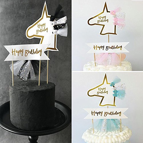 Cake topper kit includes:3 Color Tassels Happy birthday flag,3 Color Tassels Unicorn Head Birthday Cake Topper(Pink,Blue,Black)Ideal for an 8 to 10 inch cake to celebrate a your child's unicorn birthday!