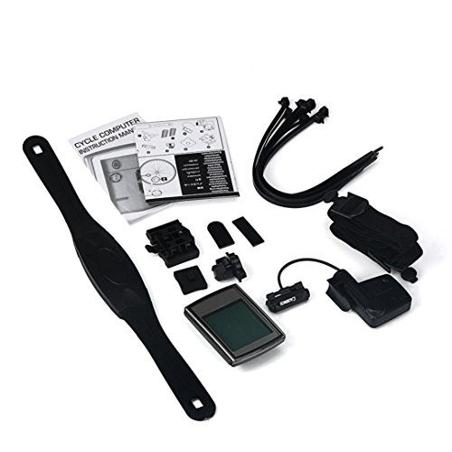 -. Feature : Multifunctional wireless bicycle speedometer, includes all vital functions for novices and pros alike, 3 in 1 function: Cadence, heart rate, speed, and other special functions like calories counter, auto wake-up, temperature, digital clock, etc. / ABS material, large screen with LCD backlight, good durability and have a clear view of the data even at night, Battery: 1 x CR2032 button battery in computer, 1 x CR2032 button battery in speed cadence sensor, 1 x CR2032 button battery in heart rate sensor ( All Included ) / Heart rate sensor with strap is included, you need to bind it on your naked body so as to monitor your heart rate effectively, Imported sensors to provide stable performance, and accurate speed / Durable and water resistant for use in all conditions. Easy to install firmly with mounting accessories, Ideal accessory for bicycle training,Stopwatch and Accessories: Wireless Stopwatch,Product Size(L x W x H): 6.50 x 4.50 x 2.00 cm / 2.56 x 1.77 x 0.79 inches / Note: The distance between magnet and sensor should be kept within 5mm