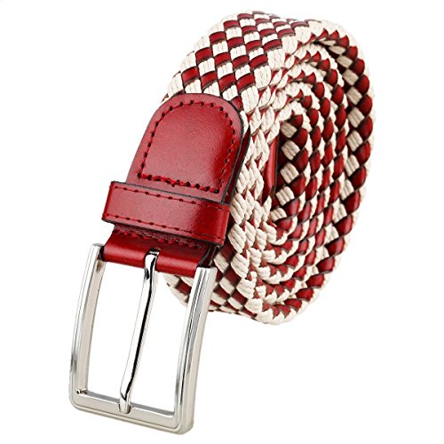 Samtree Mens Womens Black Braided Leather Belt Pin Buckle,43" Strap Length