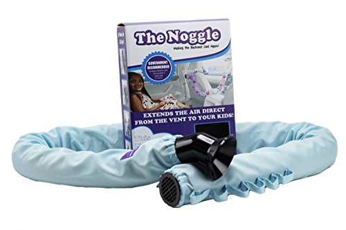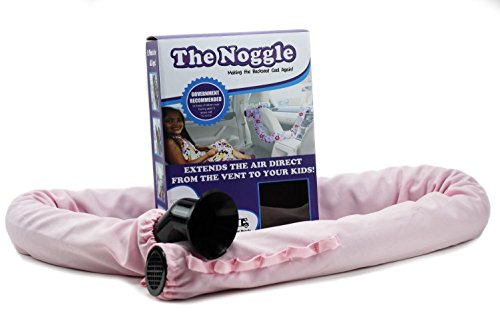 The Noggle is a travel system designed to greatly improve your automotive air conditioning and heating system with instant relief. You will now have a dedicated comfort zone wherever the Noggle is placed. It has been engineered to cool or heat kids that are always uncomfortable in any car quickly. The system installs under 30 seconds with no tools needed and will work on any vehicle. The Noggle comes in 2 sizes a 6 foot, 8 foot. It also comes with 2 adapters, one for a circular vent, and one for a rectangular vent that can be used in the vertical or horizontal position, which are the most common of the connections. The decorative cover is also functional, with the loops on the end, it can attach to anywhere. The back of the headrest, the car seat, backseat handle, rear seat belt, booster seat or anywhere you can place our connective loop. Our patented quick disconnect system allows you to easily remove the Noggle from the dash when you are traveling alone or when the car is at the desired temperature. In Arizona where we tested the car seat with a laser temperature meter the car seat surface reached 180 degrees. Parents strap kids in with a 3 point harness and make sure its tight the only problem is their skin is so sensitive they start instantly overheating. Don't let your love ones over heat, and your car rides will be nice and comfortable with no more kids screaming.Feature