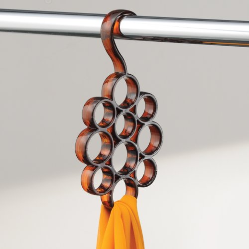InterDesign Tor Trois Scarf Closet Hanger, No Snag Storage for Scarves, Ties, Belts, Shawls, Pashminas, Accessories - 10 Loops, Brown