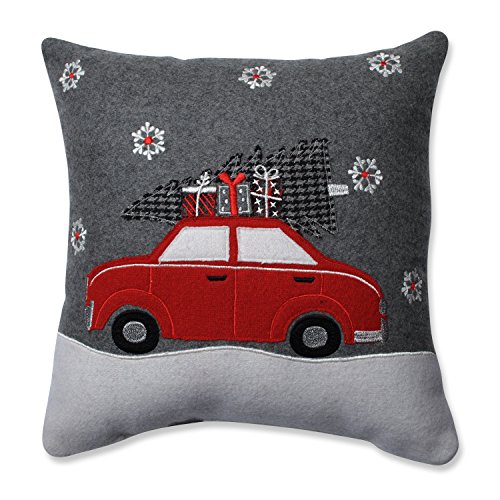 Feel like you're heading home for the holidays with this cheerful applique of a car loaded down with presents and a tree, executed in extra soft felt. Cool Gray and neutral white coordinate with bright Christmas red, and are accented with embroidery in shimmering silver lurex. Perfect to welcome home traveling family, this charming 16-Inch throw pillow will enhance the holiday spirit in any room.Feature