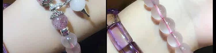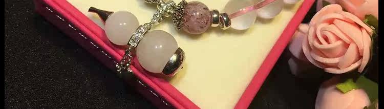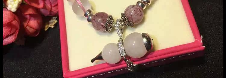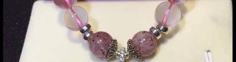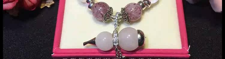 天然粉晶草莓晶手链女款冰种粉晶葫芦手链 925银手串礼物