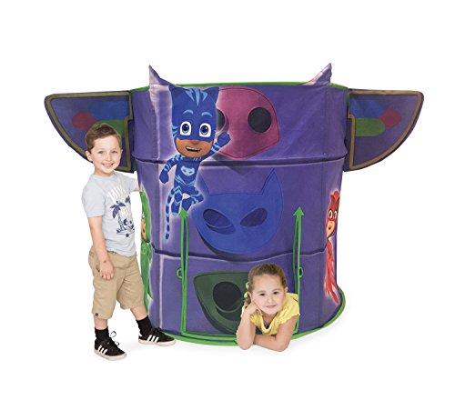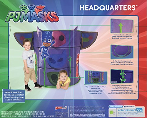 Go into the night to save the day with your favorite night heroes, the PJ masks, in your own headquarters play tent from Playhut Inc.! made with lightweight material, the Headquarter is easily assembled for EZ play and folds back up for EZ storage and travel with playhut’s patented twist N’ fold technology. Ideal for children ages three and up. Just twist, fold and store!Feature