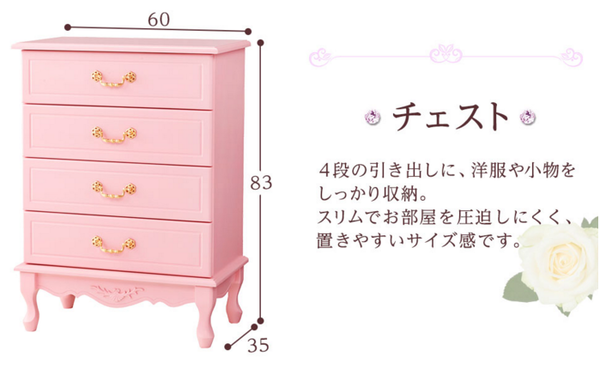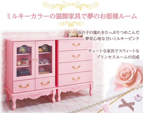 【商品名】スリムチェスト/ミルキーピンクプリンセス猫足家具 【3:チェスト】 木製
