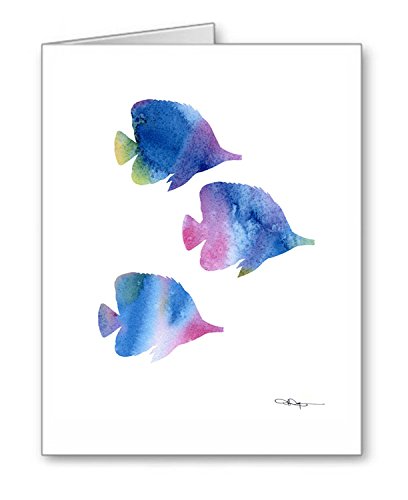-. Feature : "Tropical Fish" artwork by watercolor artist DJ Rogers. / Note card size is 4.25 x 5.5 inches / Matching white envelopes included. / Note cards are blank inside for your personal message. / Suitable for framing.