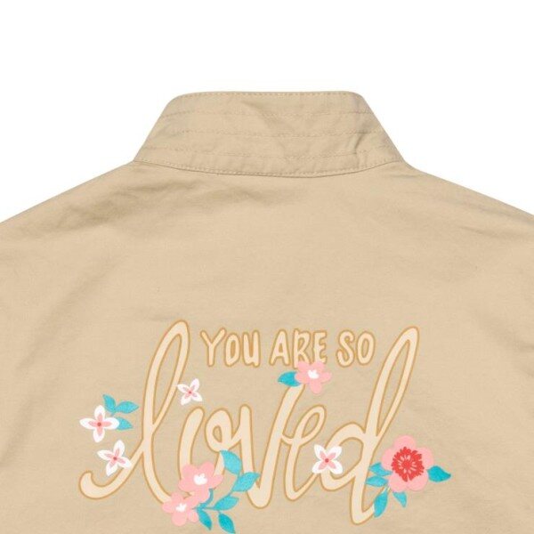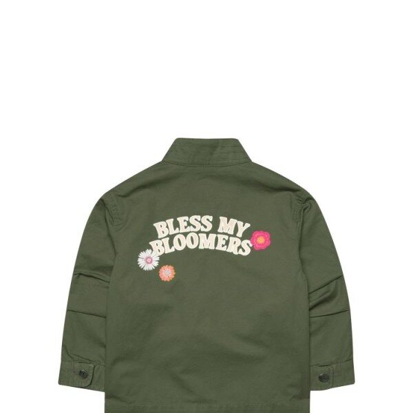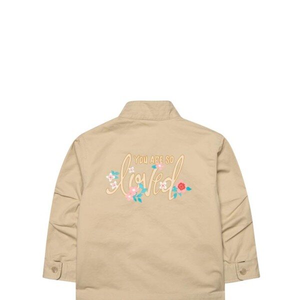 뒤에 귀여운 일러스트 그림과 문구가 들어간 여아 야상재킷 상품입니다 ^^