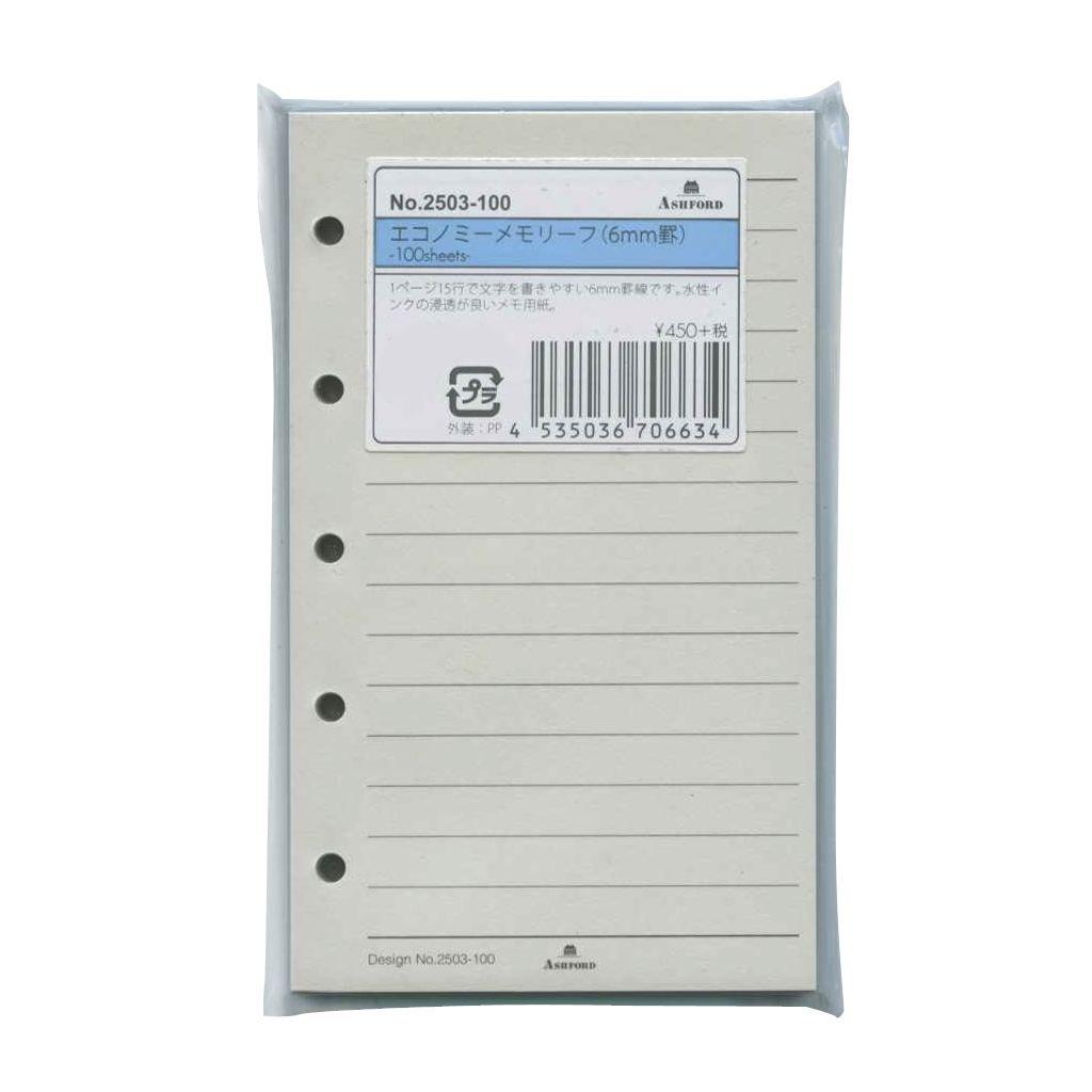 Ashford Mini size 5-hole personal organizer refill memo loose leaf paper 6mm ruled 100 sheets 2503-100