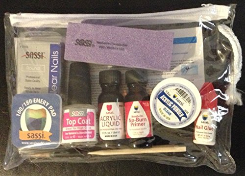 Studio : Sassi Publisher : Sassi Binding : Misc. Product Description Features:The Sassi Professional Acrylic Kit includes:-Wooden Emery Board (Coarse)-Emery Pad (Medium)-Acrylic Liquid-Acrylic Powder-Acrylic Primer-Flat Nail Brush-20 Nail Tips-Nail Glue-Emery Block-Top Coat-Cuticle Pusher-Instruction Sheet 0