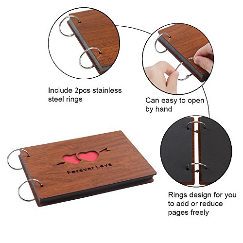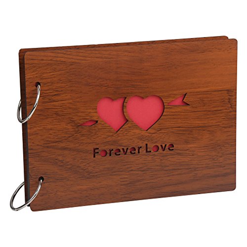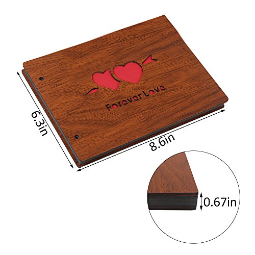 Farway DIY Scrapbook Album Photo Album Wood Cover Picture Book with Black Pages for Anniversary Wedding Guest Book Couples Graduation Travel Love Story Memory (Forever Love)