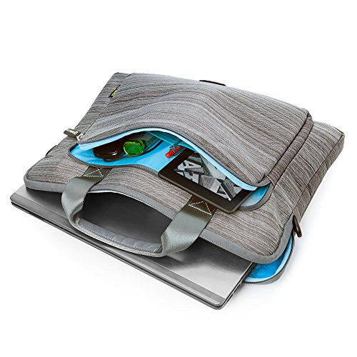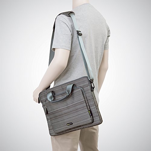 13.3" - 14.1" widescreen laptops from dust or scratches. The sleeve has features a large zippered front pocket to store a notepad, mouse, power adapter or other necessities. The padded shoulder strap and cushioned handles provide comfortable carry options. Perfect for use during travel or between meetings when a laptop and core accessories is all you need.