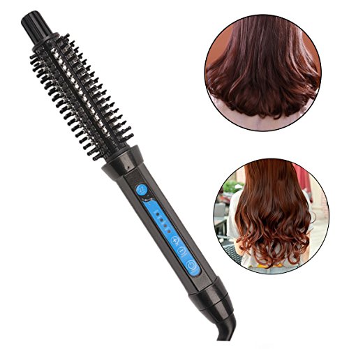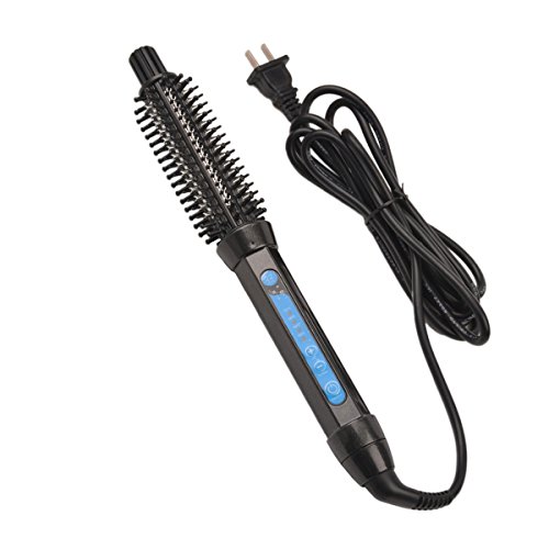 MQB HAIR CURLER HOT HAIR BRUSH IRON 2 IN 1 CERAMIC HAIR CURLING IRON WAND ROLLERS COMB BRUSH DUAL VOLTAGE 110V-240V 22MM DIAMETER BARRELS WITH 360°SWIVEL CORD (BLACK)