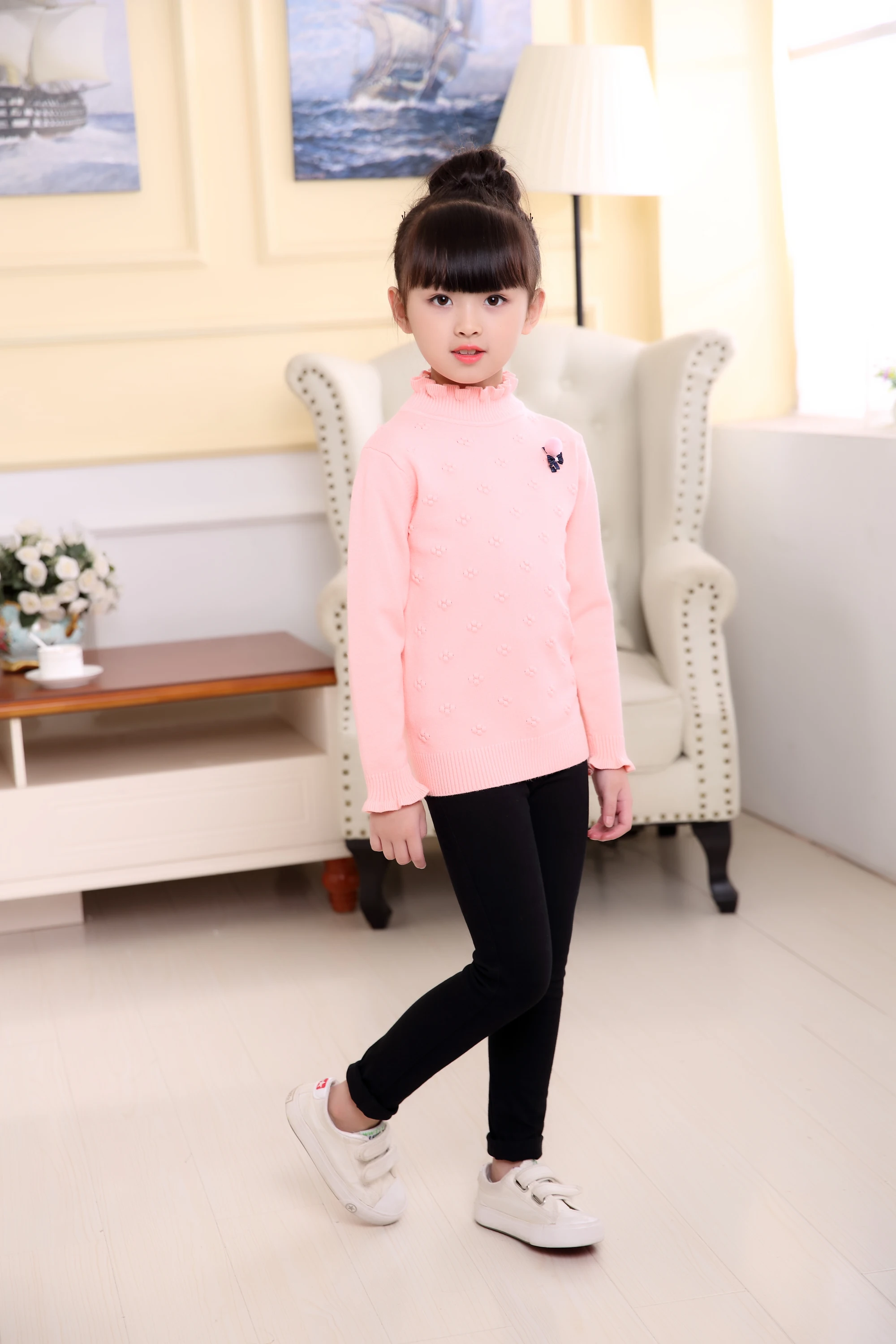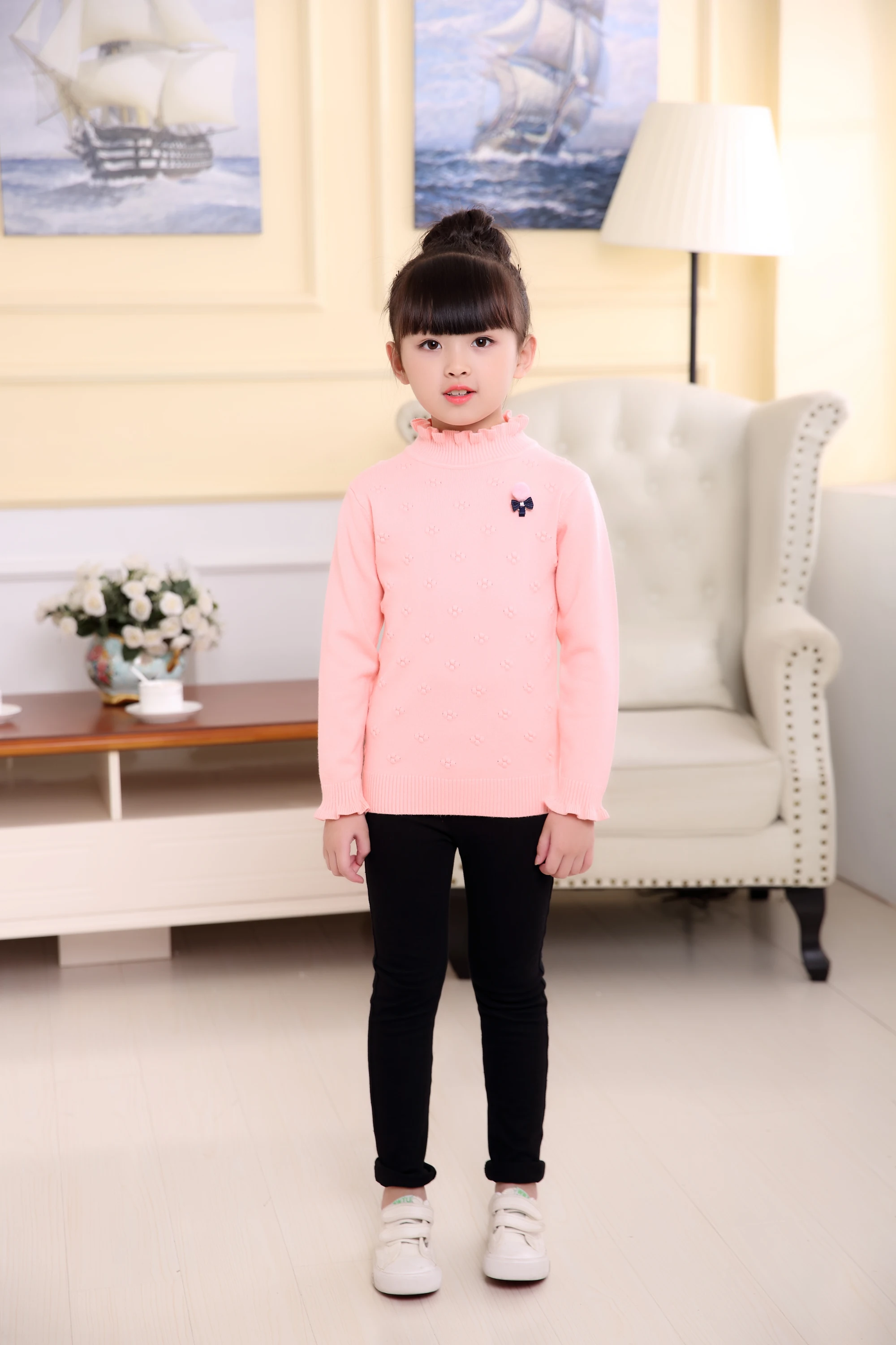 新しい2017春冬子供服女の子のセーター子供ニットセーターかわいい花アウター赤ちゃん女の子プルオーバー年齢2-6y