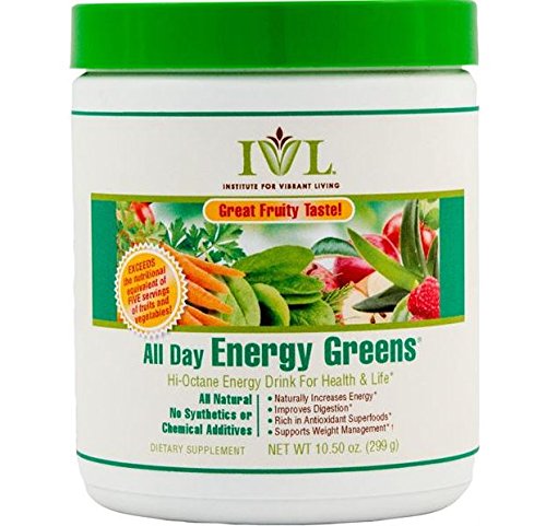 -. Binding : Health and Beauty -. Brand : Institute for Vibrant Living -. Feature : 2 Jars of 10.5 Oz / Supercharge your energy and overall health with All Day Energy Greens / This green superfood is a daily dose of veggies - and a whole lot of extra pep - in one glass / Just one tablespoon mixed in water or a smoothie makes for a truly delicious and refreshing beverage that exceeds the nutritional equivalent of five servings of vegetables and fruits -. Label : Institute for Vibrant Living -. Manufacturer : Institute for Vibrant Living -. ProductGroup : Health and Beauty -. ProductTypeName : HEALTH_PERSONAL_CARE -. Publisher : Institute for Vibrant Living -. Studio : Institute for Vibrant Living -. Title : Institute for Vibrant Living All Day Energy Greens® Fruit Flavor Hi-Octane Energy Drink For Health & Life Great Fruity Taste - 10.5 oz