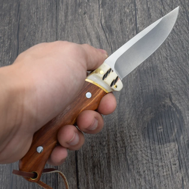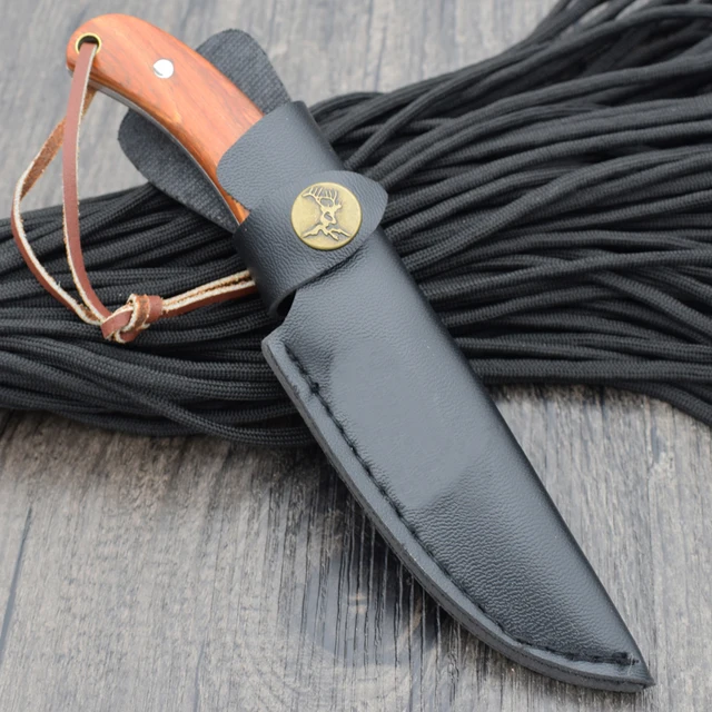 | [해외] 높은 품질 브라우닝 고정 스틸 블레이드 나이프 생존 전술 나이프 가죽 칼집 사냥 캠핑 나이프 야외 도구 |
