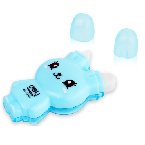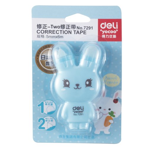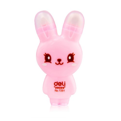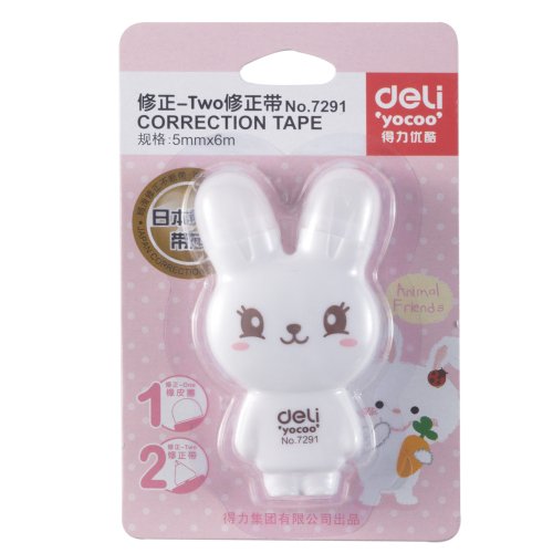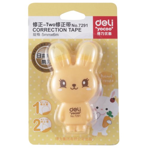 - Feature : Stationary / Deli Correction Tape and Eraser Rabbit Two-ways (Shell Random Color) / Tape Width 5mm X Tape Length 6m / 4 Colors: Pink, Yellow, White, Blue (Through e-mail can select color) / Good quality