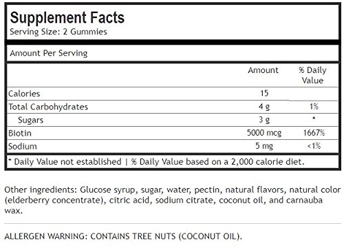 WHY BIOTIN?: Biotin is an essential Vitamin B for Cell Growth and Metablism of Fats & Amino Acid. As an All-Natural Supplement, Biotin can help supplement skin, hair and nail care, as well as promote hair and nail growth. Now available in gummy form, you have the convenience of taking this as a snack, or when you are on the go.