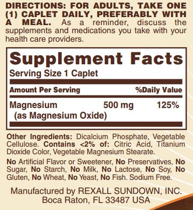 Product DescriptionSundown Naturals Magnesium 500 Mg Caplets Value Size, 180 Count, (Pack of 2)0