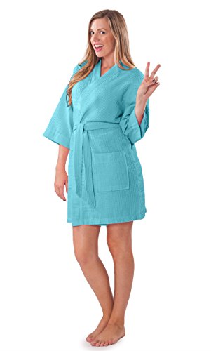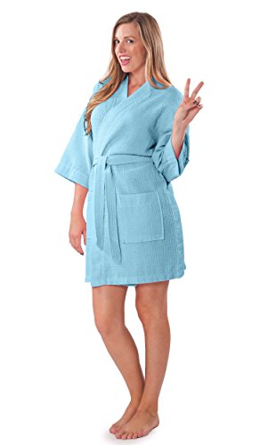 | (Turquaz Linen)/Women/Sleepwear/DIRECT FROM USA/Lightweight Knee Length Waffle Kimono Bridesmaids Spa Robe |
