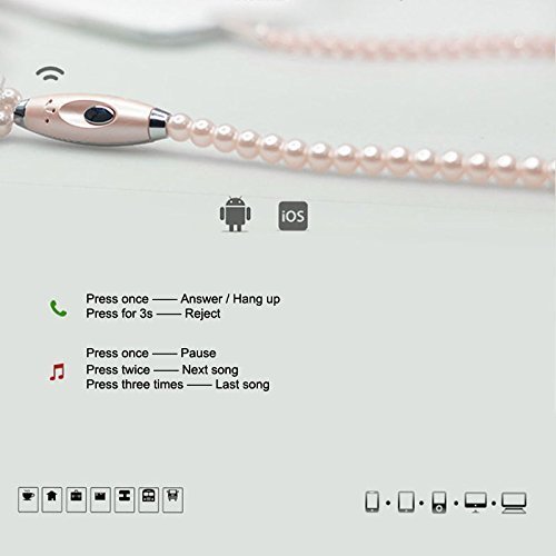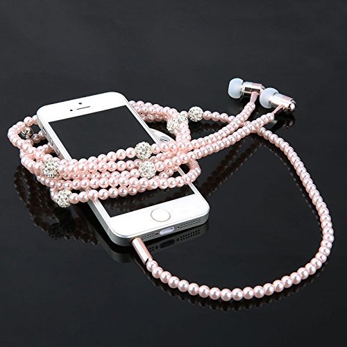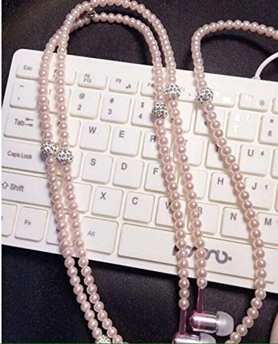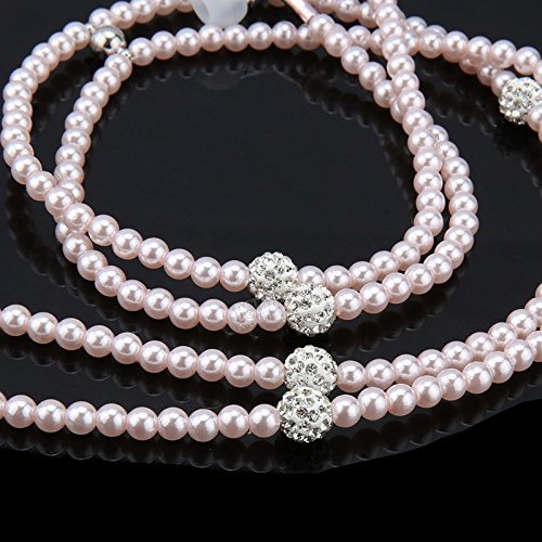 Fashionable Jewelry Pearl Necklace Earphones Headset with Mic Beads 3.5mm In-ear Earbuds wired Headphone for Ipod, Iphone, Android, Blackberry, Mp3 Player And All 3.5mm Audio Devices (Pink)