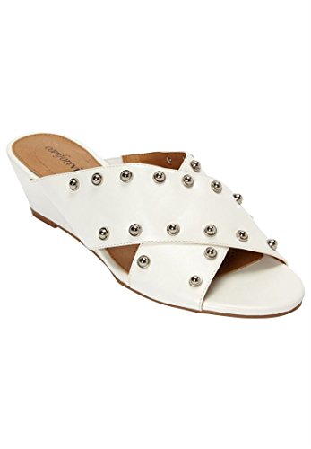 Studio : Comfortview Publisher : Comfortview Binding : Apparel Product Description Bold and brilliant with metal stud detail, these leather-like sandals bring trendy flair to a traditional style. Wear at work or at your next event. Perfect for every occasion! faux-leather upper metal stud detail for updated style inside elastic gore memory foam insole flexible, skid-resistant sole 1¾" heel Metal stud sandals available in full and half sizes 0