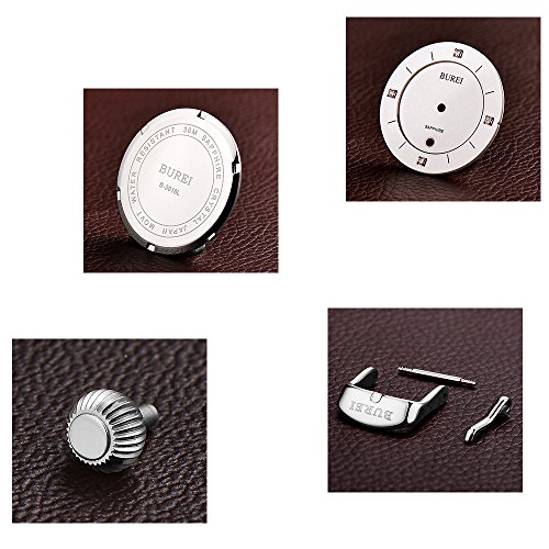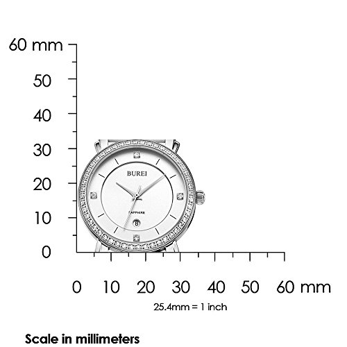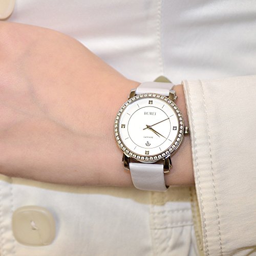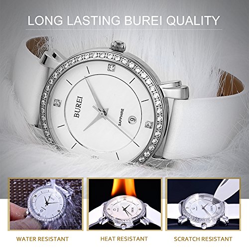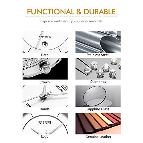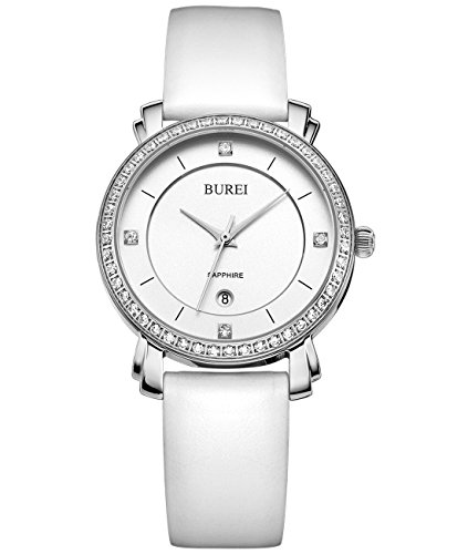 BUREI Women Watch Fashional Dress Quartz Watches for Ladies Simple Face Date Calendar Sapphire Lens and Soft Leather Strap