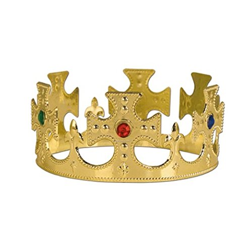 -. Brand : Funny Party Hats -. Color : Gold -. Department : boys -. EAN : 0887600133235 -. Feature : Make your Grand Entrance with this Gold Faux Jewel Encrusted Crown. Add this Regal Crown to Enhance Any Royal Costume / This Plastic Crown sits Comfortably on Top of the Head / The Colored Gem Stones Evoke Opulence and Royalty Faux / Perfect for Halloween Costumes, Office Parties, Birthdays and Theme Events / Great for Stage Plays for all Lords and Ladies. Comes in a Party Pack of 6 Regal Crowns -. Label : Funny Party Hats -. Manufacturer : Funny Party Hats -. Model : Funny Party Hats -. PackageQuantity : 1 -. ProductGroup : Apparel -. ProductTypeName : CHILDRENS_COSTUME -. Publisher : Funny Party Hats -. Size : One Size -. Studio : Funny Party Hats -. Title : Plastic Jeweled Gold Crown (6 Pcs) -. UPC : 887600133235
