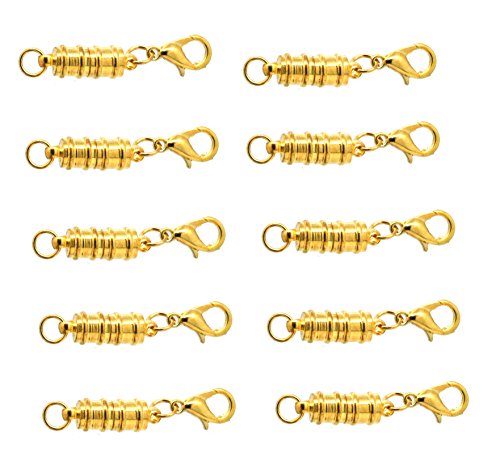 Mandala Crafts 10 Silver Gold Tone Jewelry Making Magnetic Hooks Lobster Clasps Necklace Bracelet Converter Extender (Gold Color)