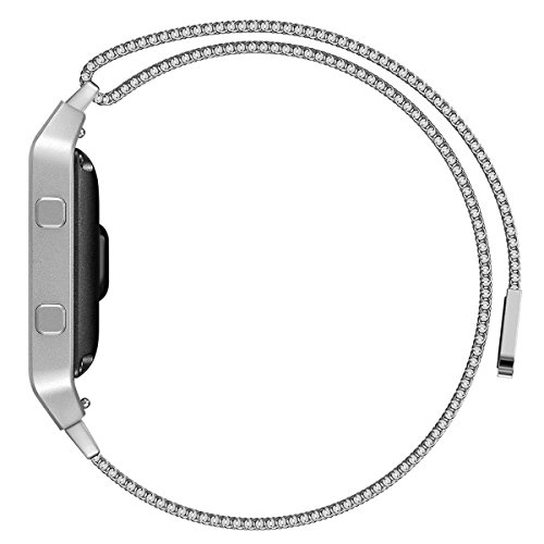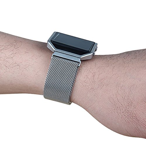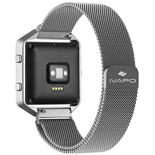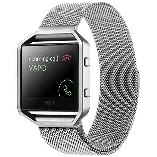 Fitbit Blaze Replacement Band, Large(9.3 inch) iVAPO Fully Magnetic Closure Clasp Mesh Loop Milanese Stainless Steel Bracelet Strap for Fitbit Blaze Smart Fitness Watch(MM623) (Silver)