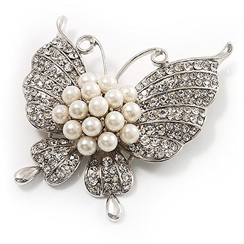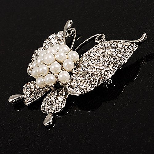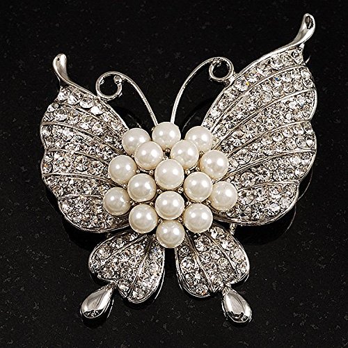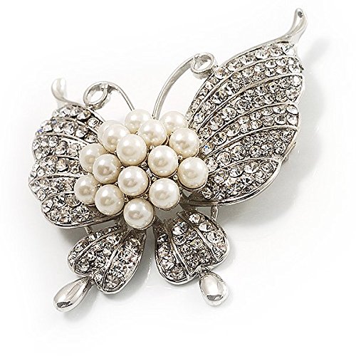 -. Title : Exquisite Imitation Pearl Crystal Butterfly Brooch
