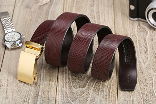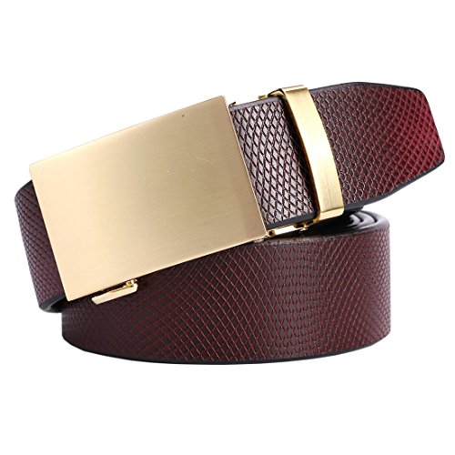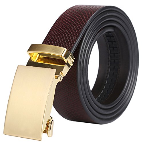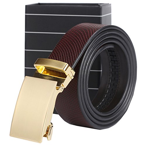 Material: Belt - Genuine Leather, Buckle - Zinc Alloy. Package in cluding: 1 ratchet belt + 1 buckle + 1 magnetic gift box.